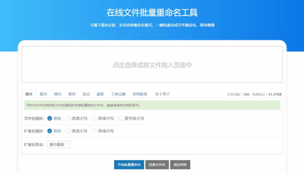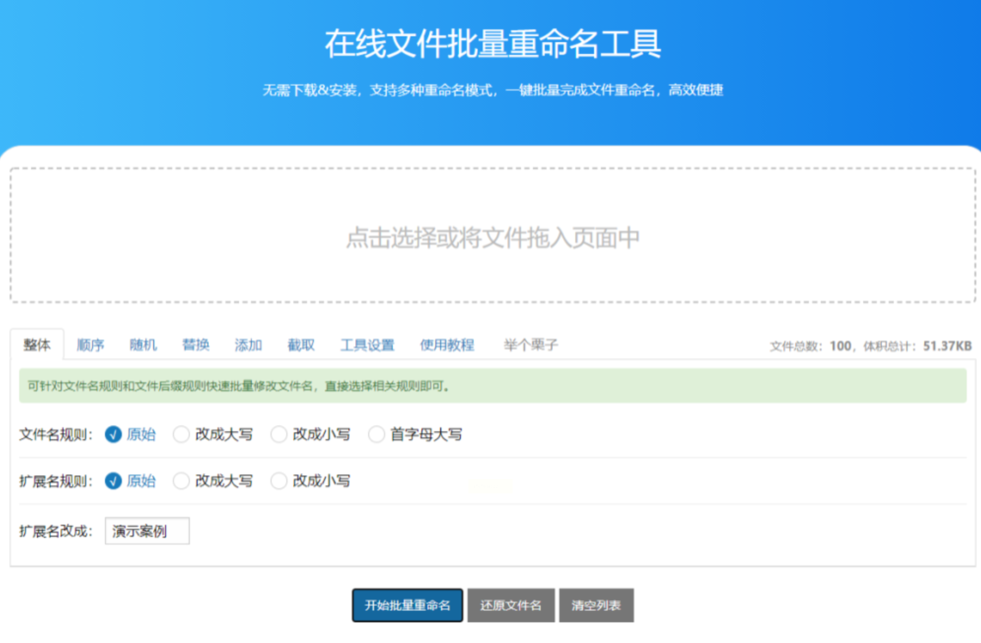 适用场景:偶尔需要批量处理、无安装软件权限(如公共电脑)、文件数量较少(50个以内)