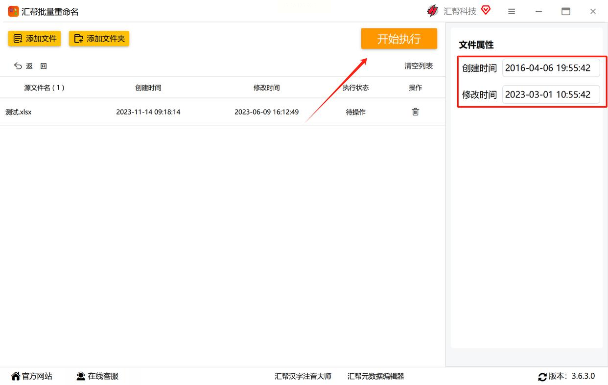 两个时间都设定妥当后,重头戏来了!找到界面下方那个大大的 “开始执行” 按钮,带着一点仪式感,点击它。软件就会开始自动、安静地为你处理所有文件。过程很快,完成后会弹出“操作成功”的提示。这时,你再去右键查看任意一个文件的属性,对比一下修改前后的时间,成就感瞬间就上来了!