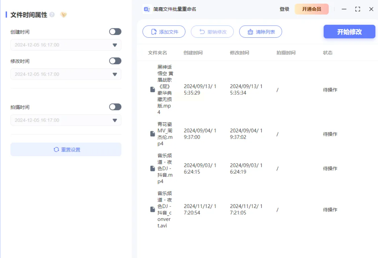 文件添加好后,看软件右侧。这里会明确区分“创建时间”和“修改时间”。你需要改哪个,就在哪个后面点击一下。注意,这里不是手动输入,而是会弹出一个非常直观的日期时间选择框。