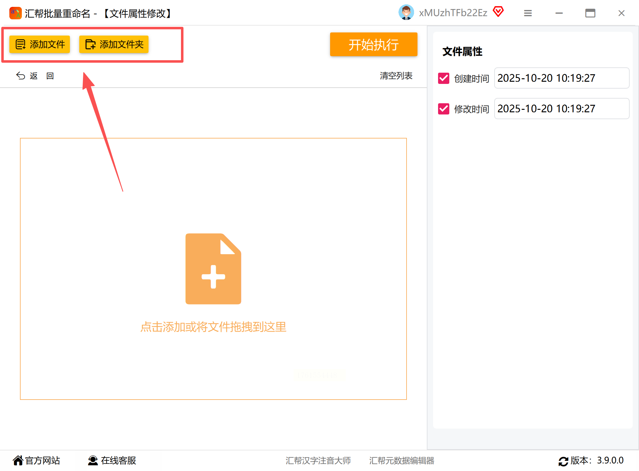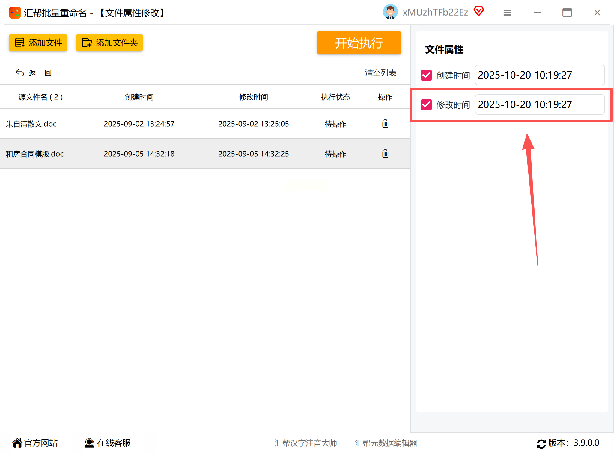 打开“汇帮批量重命名”软件后,界面简洁直观。在主界面中,找到并点击“文件属性修改”选项卡。该选项卡会展开包含“创建时间”“修改时间”“访问时间”的设置区域,您可根据需求勾选对应的时间类型进行调整。