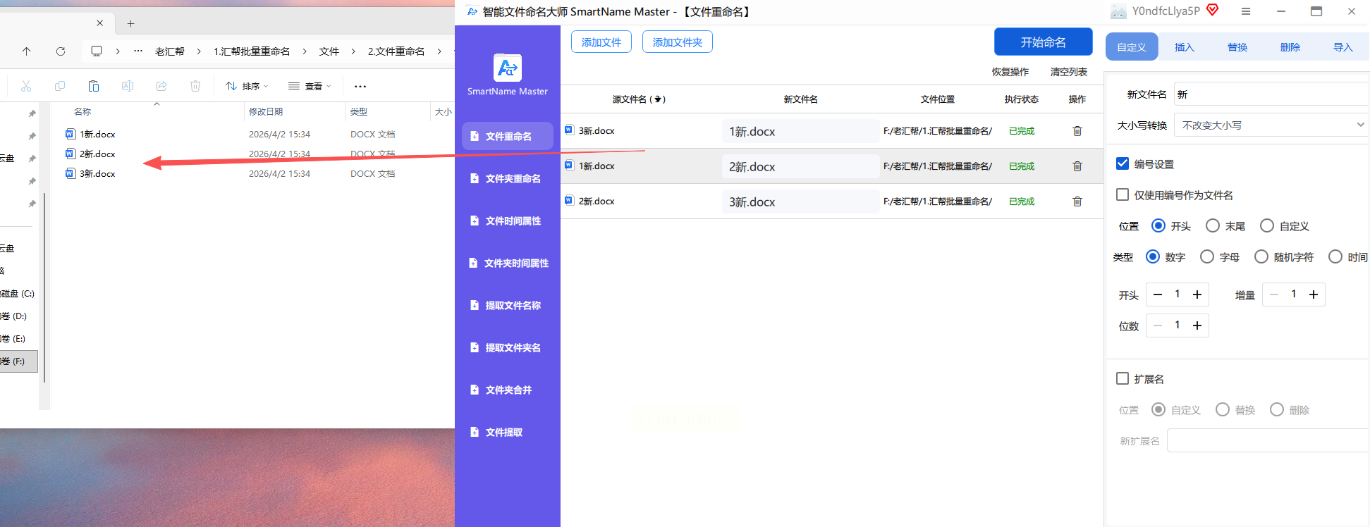 5. 执行操作:点击"开始重命名"按钮,等待操作完成后,所有文件已按新规则重命名。