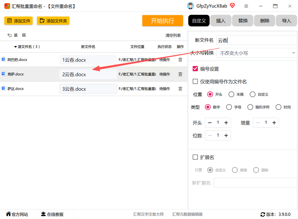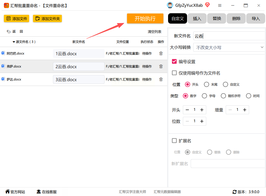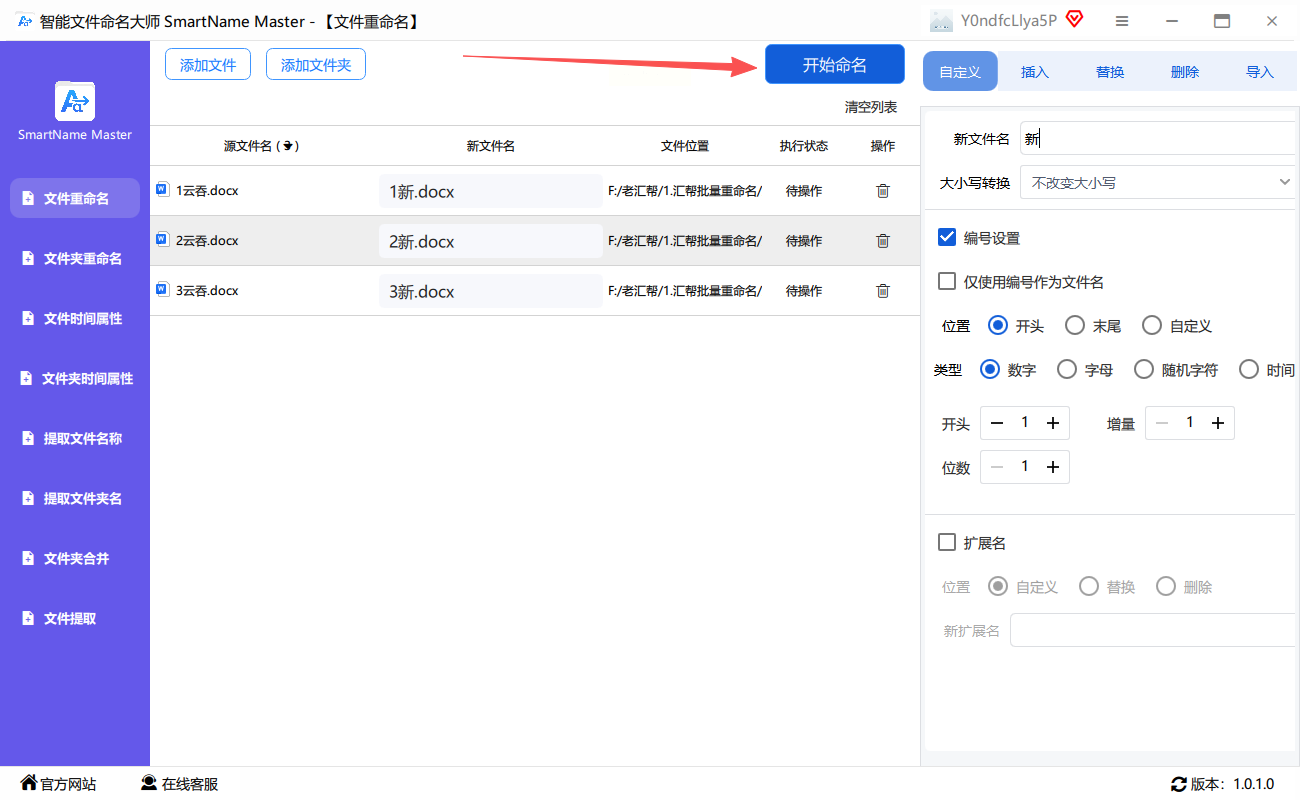 5. 执行操作:点击"开始"按钮,完成批量重命名。