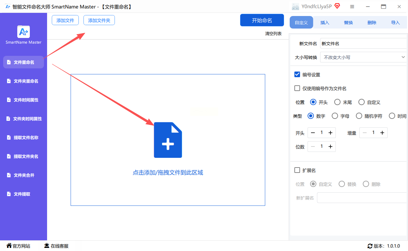 2. 添加文件:在界面中间区域,点击"添加文件"或"添加文件夹"按钮,可批量选择需要重命名的Word文件。也可以直接将文件拖拽到软件窗口中。