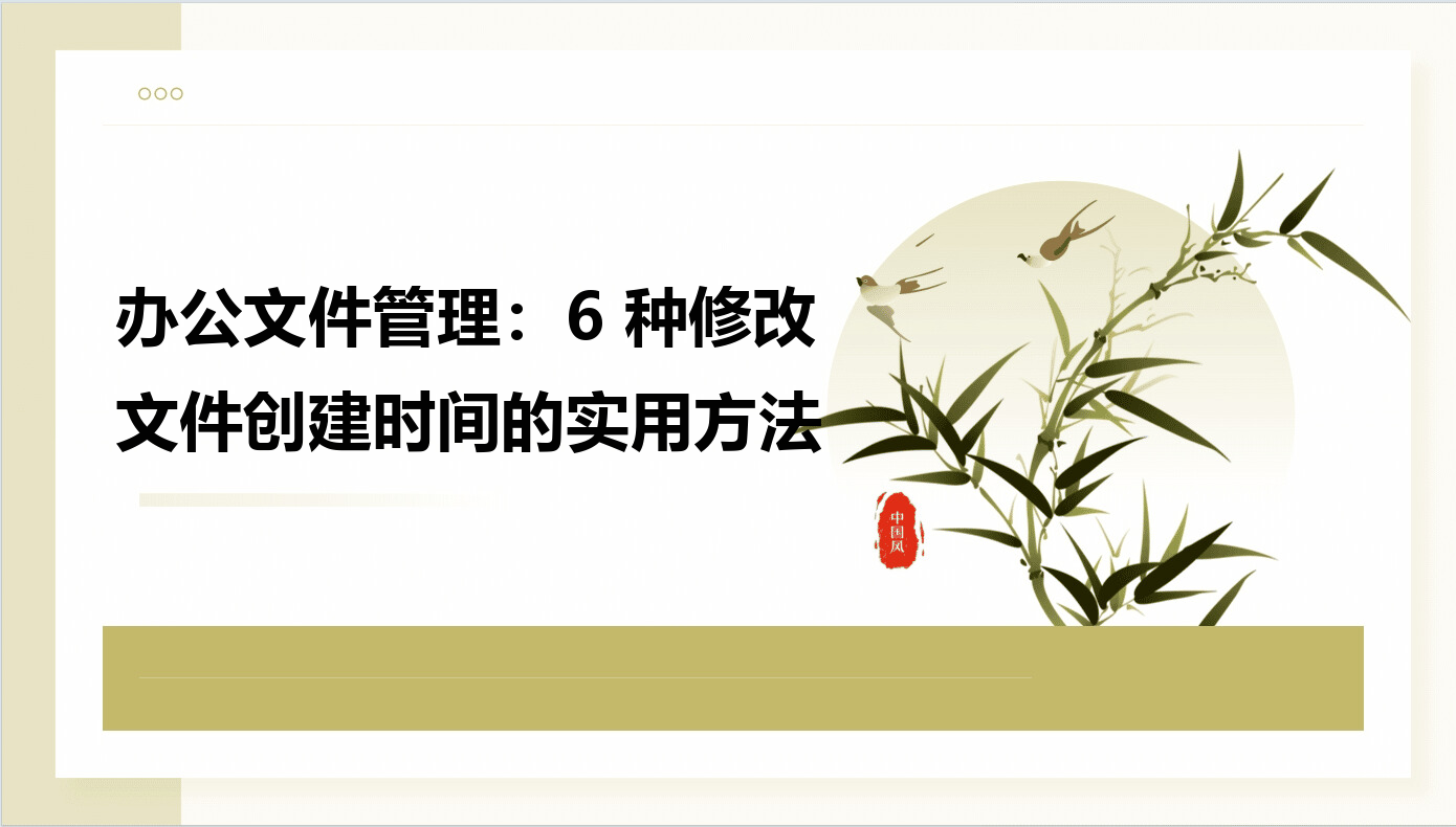 在日常文件管理中,调整文件的创建时间是一项常见需求。无论是为了统一归档标准,还是优化工作流程,掌握这项技能都能提升效率。本文将详细介绍六种修改文件创建时间的方法。所有步骤均经过实测,确保安全可靠,避免内容泄露风险。