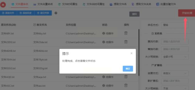 全部设置完成后,点击“开始重命名”按钮。处理过程中不要关闭软件,等待进度条完成即可。