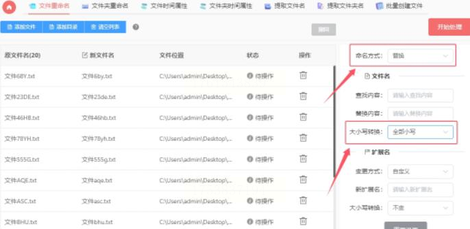 添加完成后,所有文件会以列表形式显示在界面中。接下来要设置修改规则,在“查找内容”中写上需要修改的大小或小写字母。然后子啊“替换内容中写入需要替换的大小或小写字母