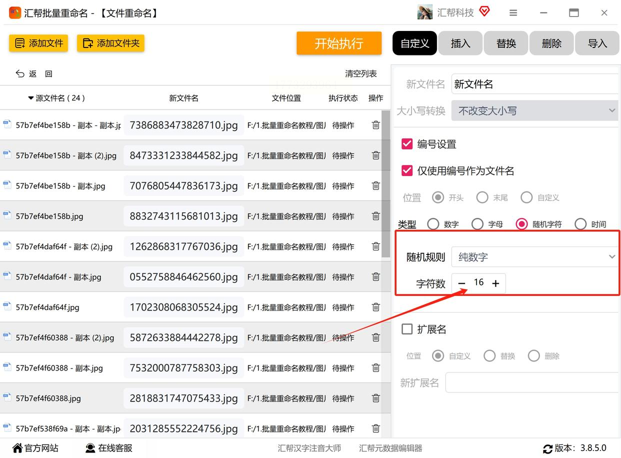 调整"字符数"(如设置为4位数字则生成0001-9999),界面会实时预览效果。