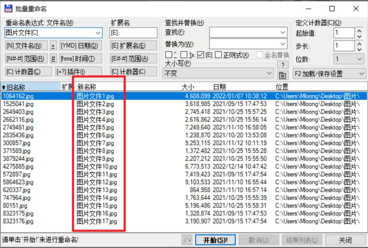 每设置一个变量,下方预览窗口会实时显示效果。确认无误后点击"开始",软件会立即完成重命名。