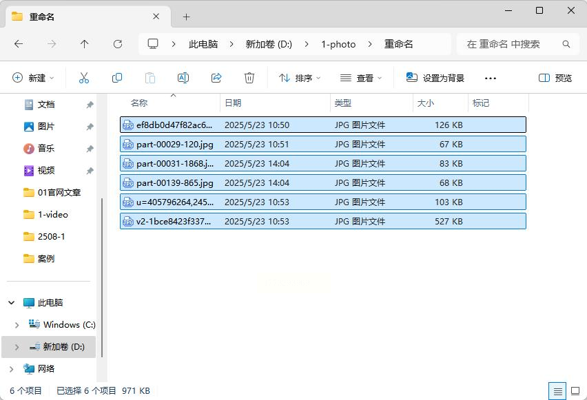 按下回车后,所有选中的图片会立即重命名。如果需要修改序号起始值或格式,可以再次选中文件按F2重新编辑。