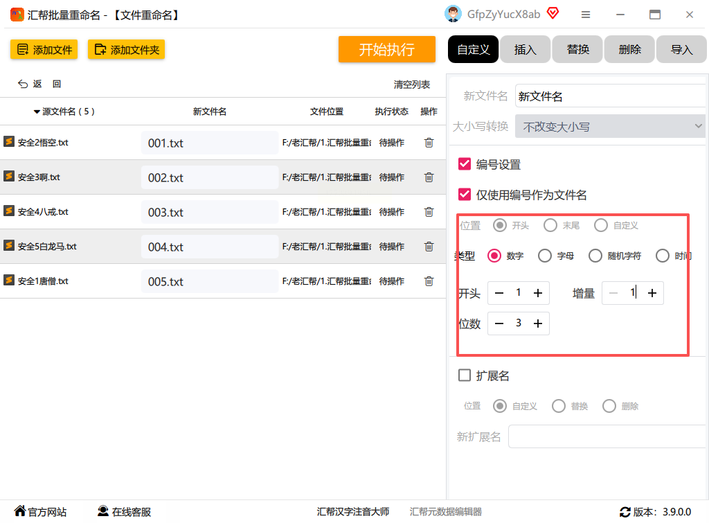 4. 执行重命名:点击右下角的"开始执行"按钮,软件会自动批量修改文件名