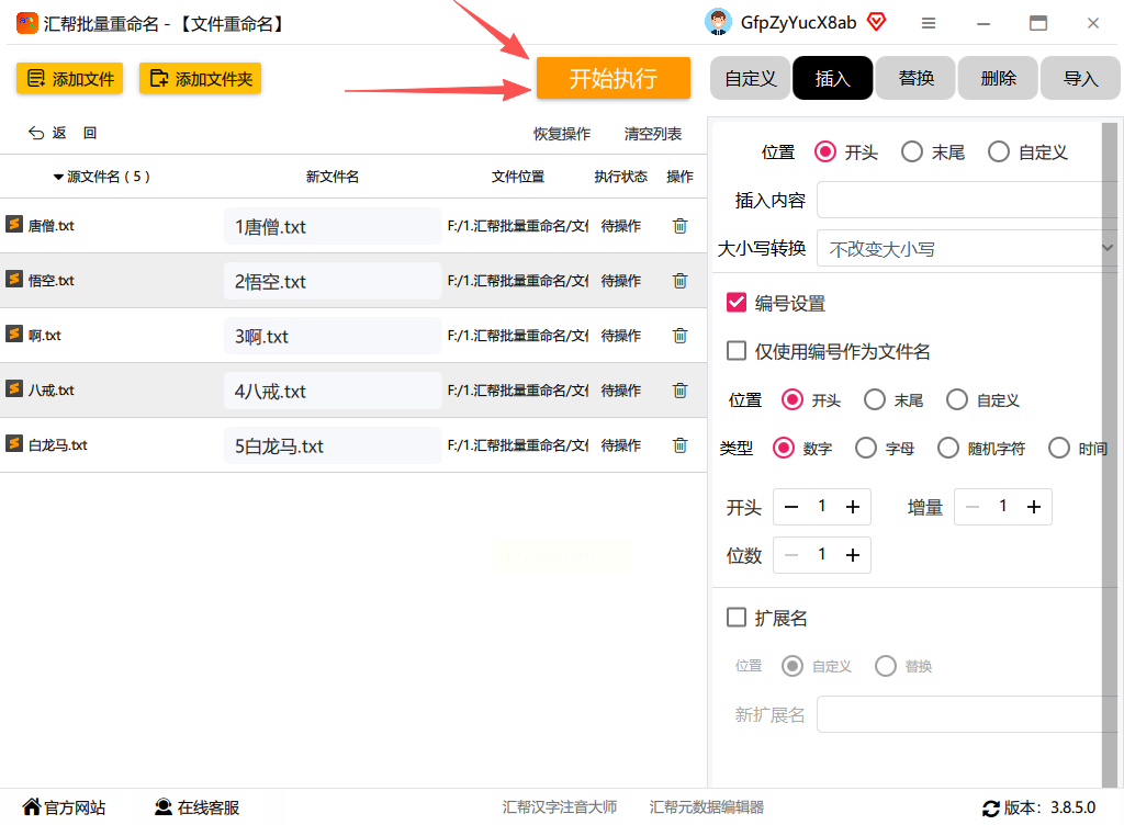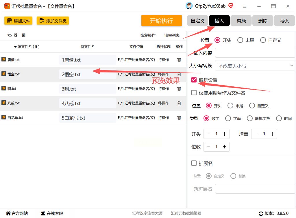 核心优势:纯中文界面,新手友好,支持实时预览效果,适合非专业用户快速上手给文件添加序号。