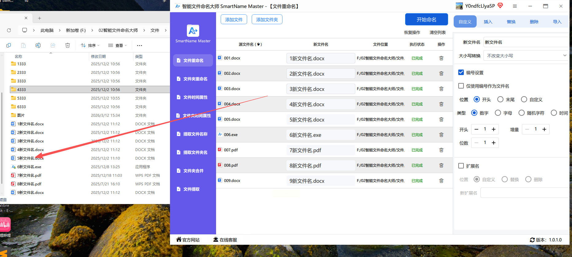 适用场景:需要灵活调整序号格式(比如用字母分隔符)、多格式文件混合处理的场景,适合灵活给文件添加序号。