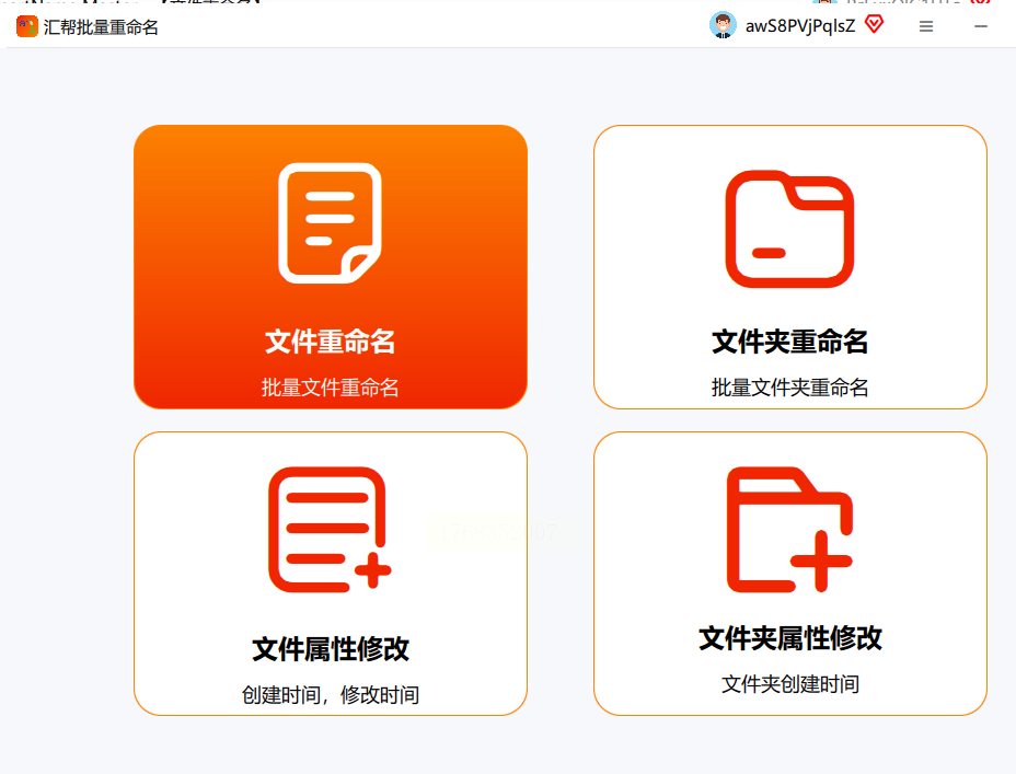 先打开工具,界面很简单,你一眼就能看到那个写着"文件重命名"的大按钮,直接点它就行!