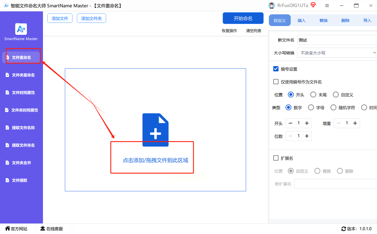 打开智能文件命名大师,选择“文件重命名”功能,