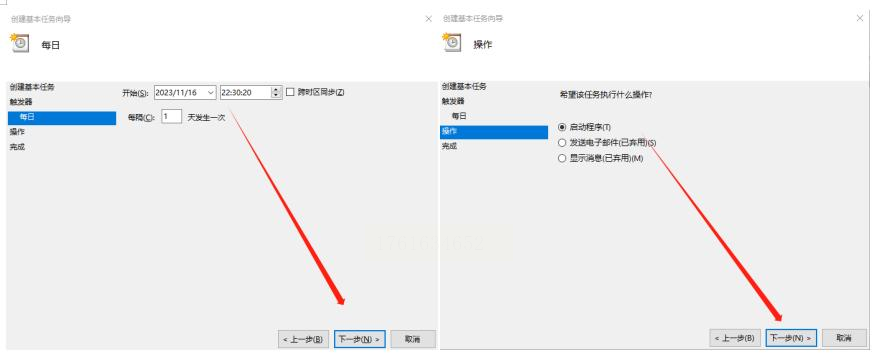 步骤三:设置每日或单次触发模式,在操作类型中选择启动程序