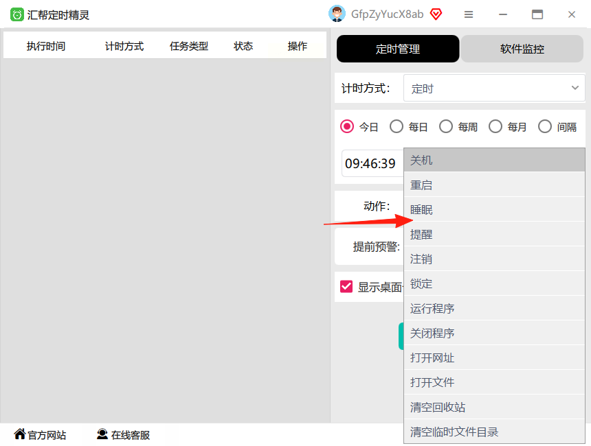 步骤四:确认创建后,桌面将浮现悬浮提示窗,执行前10秒会触发预警提示,任务列表支持随时中断或修改