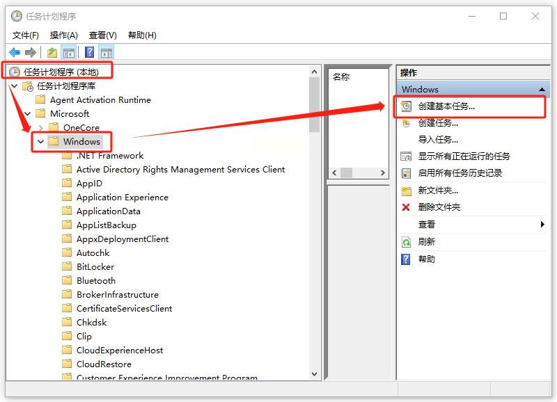 步骤二:在操作栏选择创建基本任务,按照向导填写任务名称