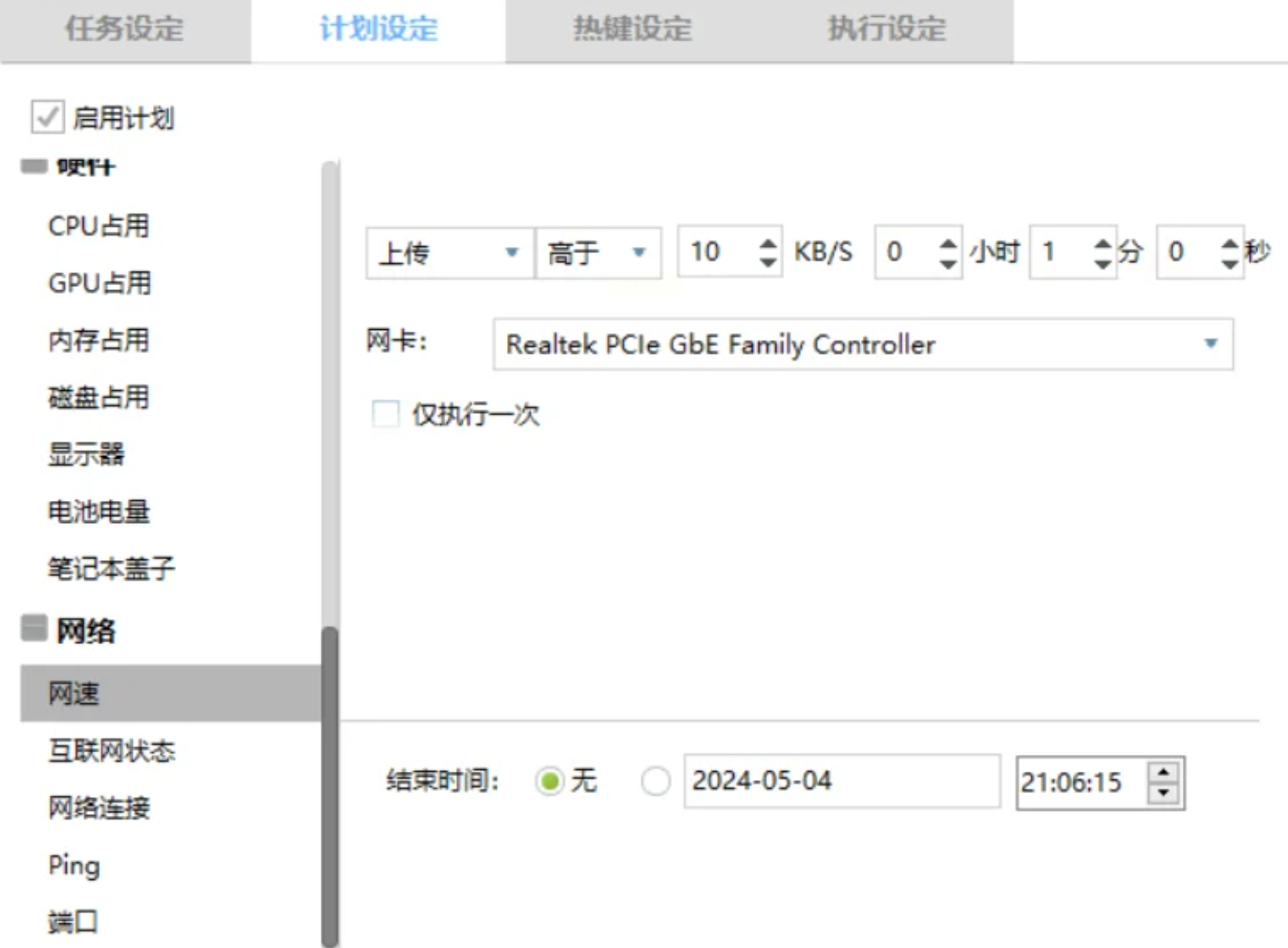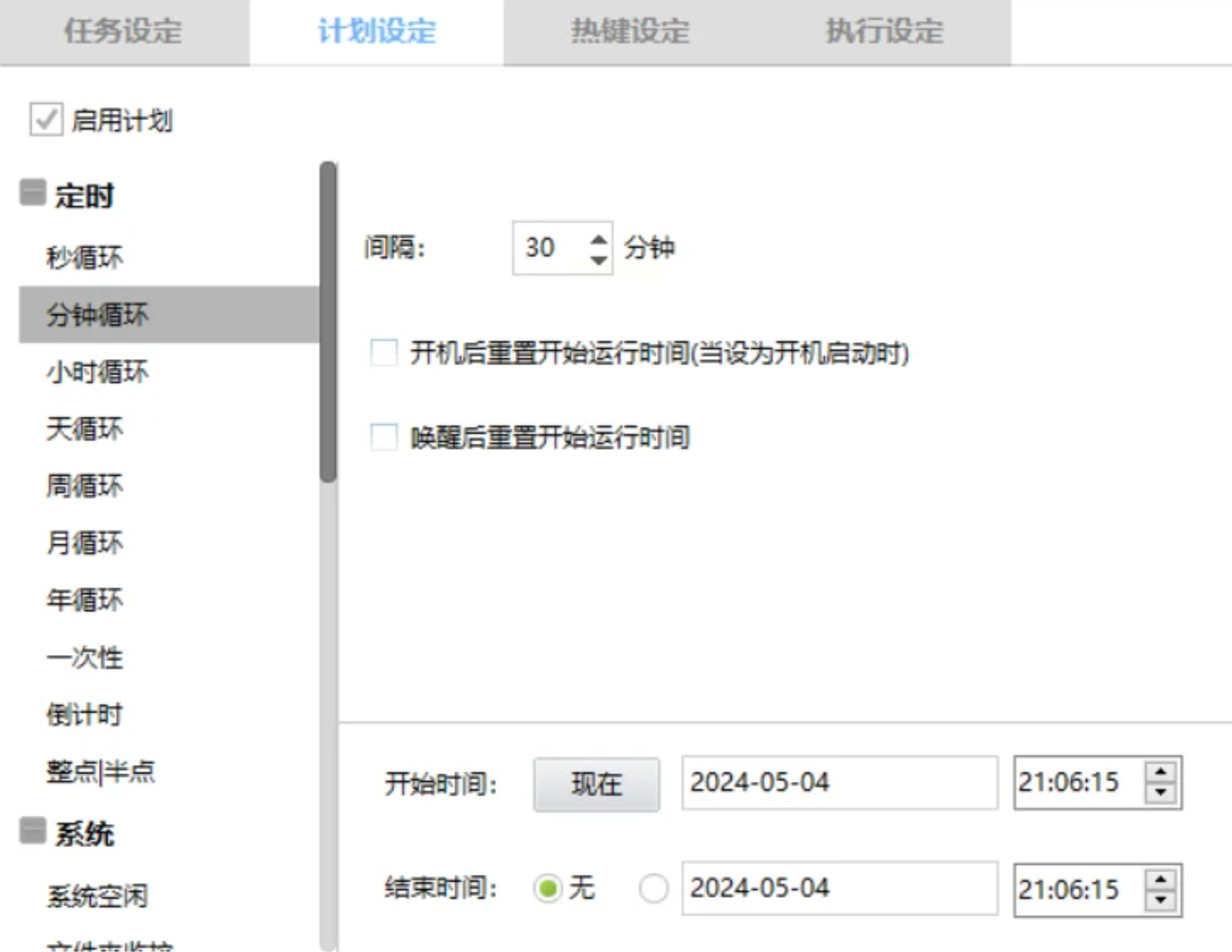 点击"创建任务"后,任务会显示在左侧列表中。如需修改,可直接点击任务名称进入编辑界面;若无需调整,系统会自动按计划执行。任务生效后,系统托盘会显示小图标提示。