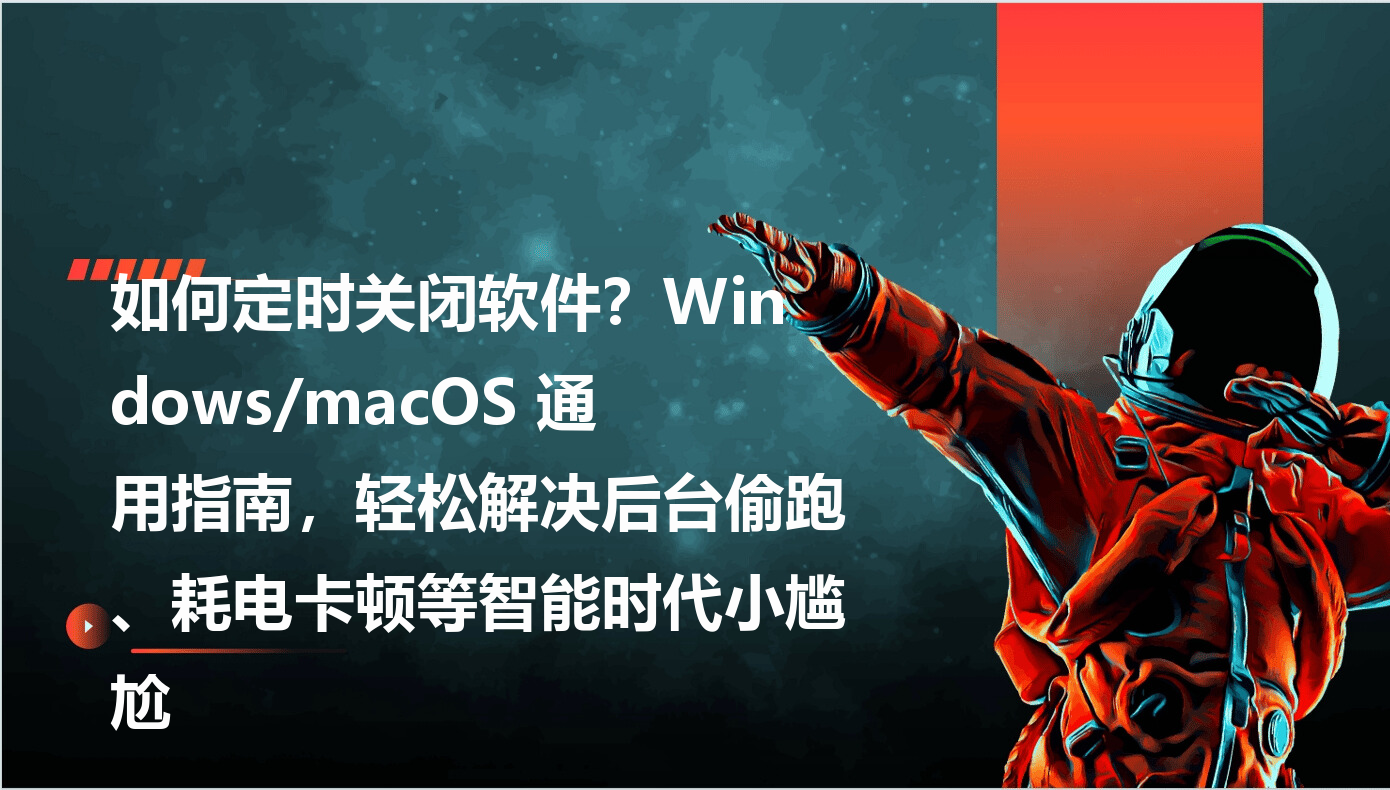 深夜加班,十几个软件在后台“偷跑”,电脑卡成幻灯片;午休听歌小憩,醒来发现播放器耗光耳机电量;出门前挂机下载,回家才看到软件早已卡住空转——这些智能时代的小尴尬,你是否也常遇到?其实,无论是Windows还是macOS用户,只需掌握几个简单方法,就能让软件在你需要时安静退场。今天分享的这套操作方案,从一键式工具到系统原生功能,总有一款能帮你找回对电脑的掌控感。