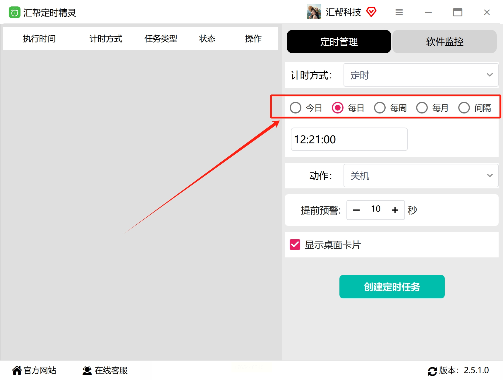 软件名称:汇帮定时精灵