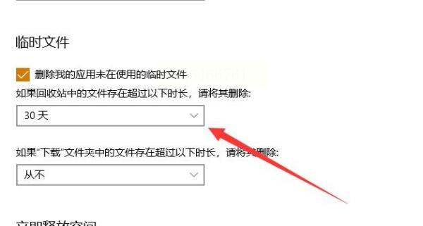 你会看到关于回收站的选项,默认可能是30天自动清理。点开下拉菜单,可以选1天、14天、30天、60天等等。按你的需要选个周期,系统到时间就会自动清空回收站。