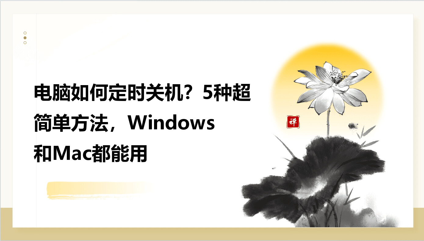 很多人都不知道电脑如何定时关机,每次下载、挂机、导出文件,都要守在旁边等结束,既浪费时间又伤电脑。其实不管是 Windows 还是 Mac,都有超简单的设置方法,不用装软件、不用复杂操作。今天就把 5 种亲测好用的定时关机技巧全部分享给你,新手也能一看就会。