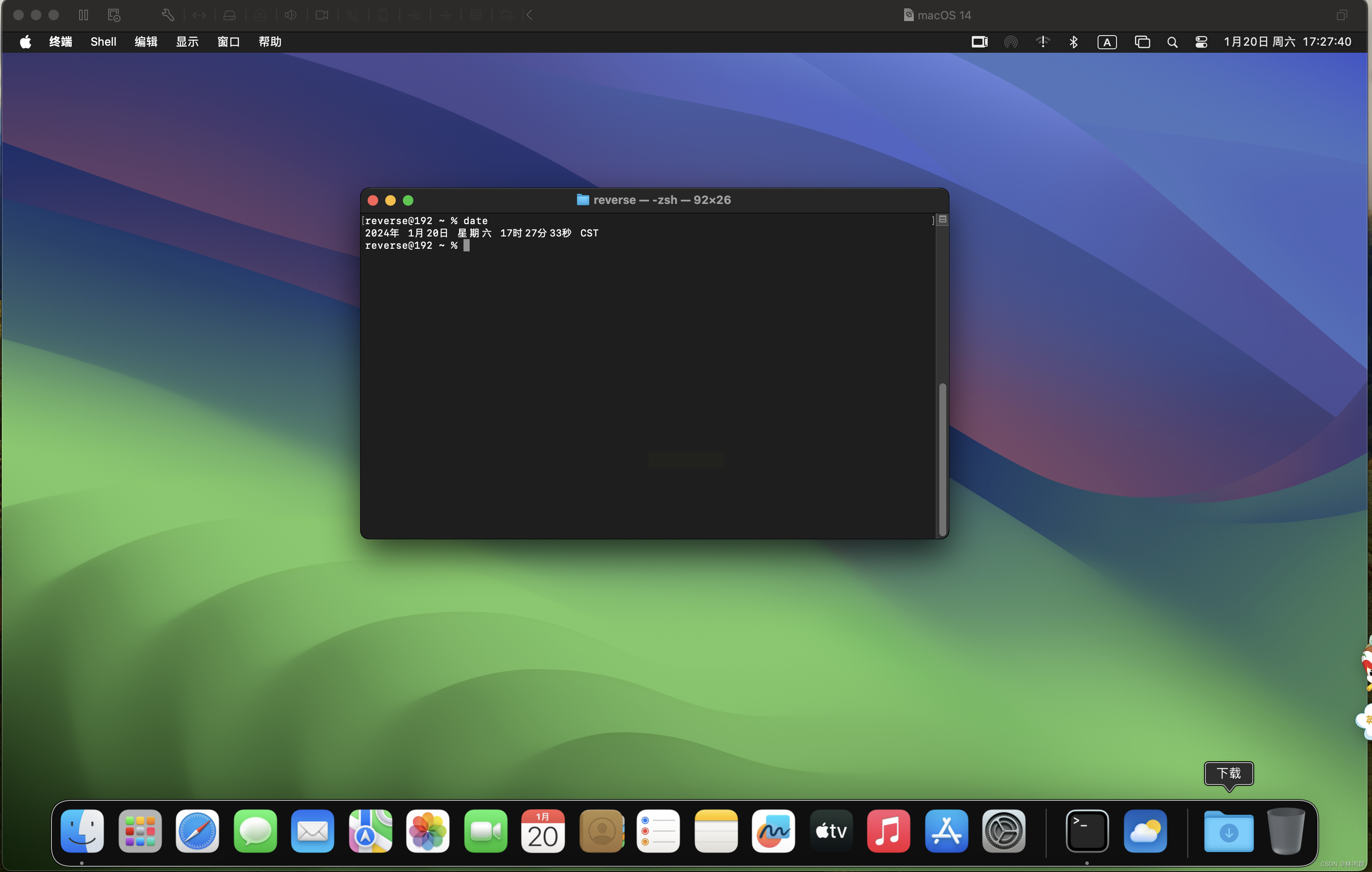 按“Command+空格”(同时按)→输入“终端”→回车,打开“终端”窗口。