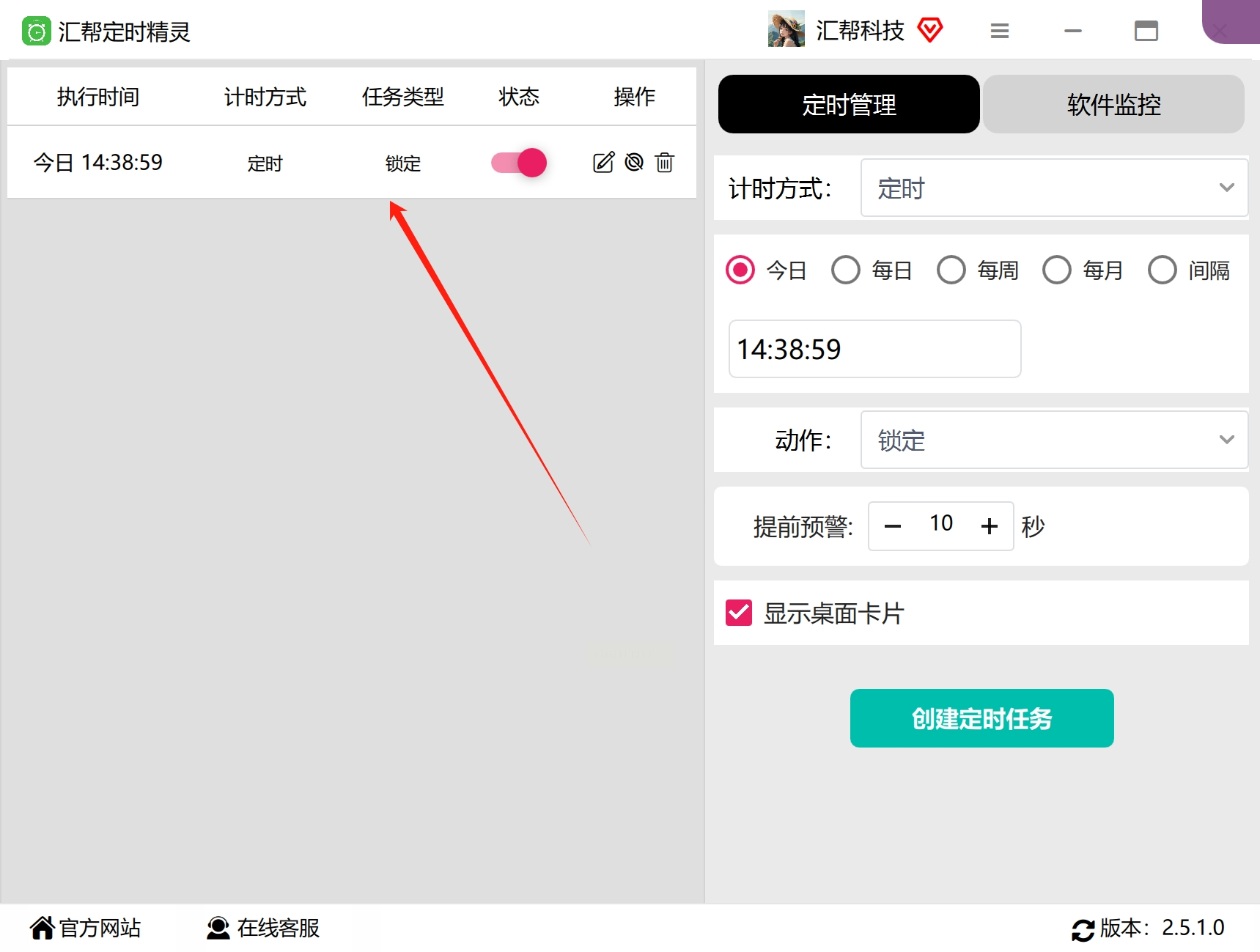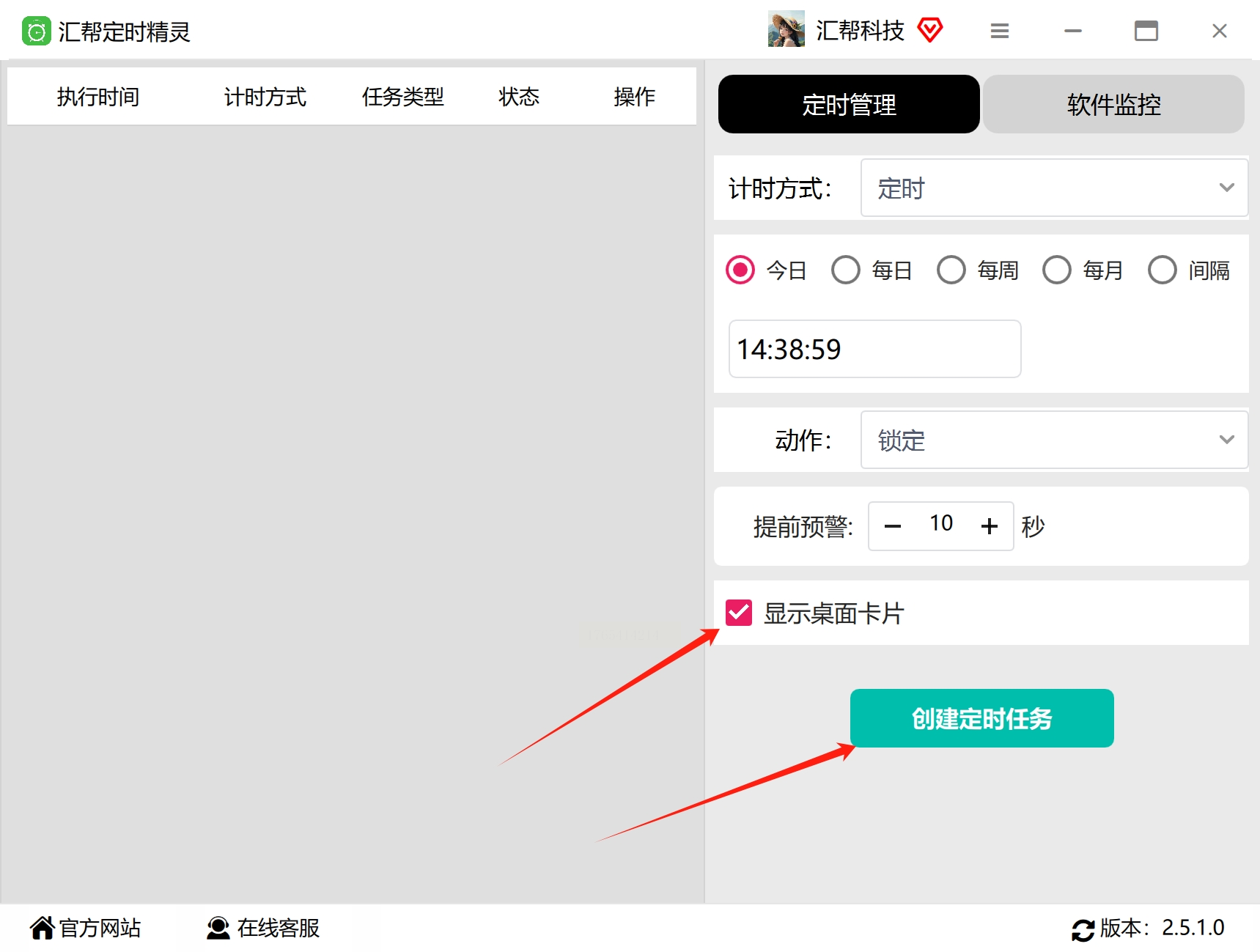 6. 根据个人偏好,选择是否在桌面上显示任务卡片,以便随时查看任务状态。确认所有设置无误后,点击“创建定时任务”按钮。