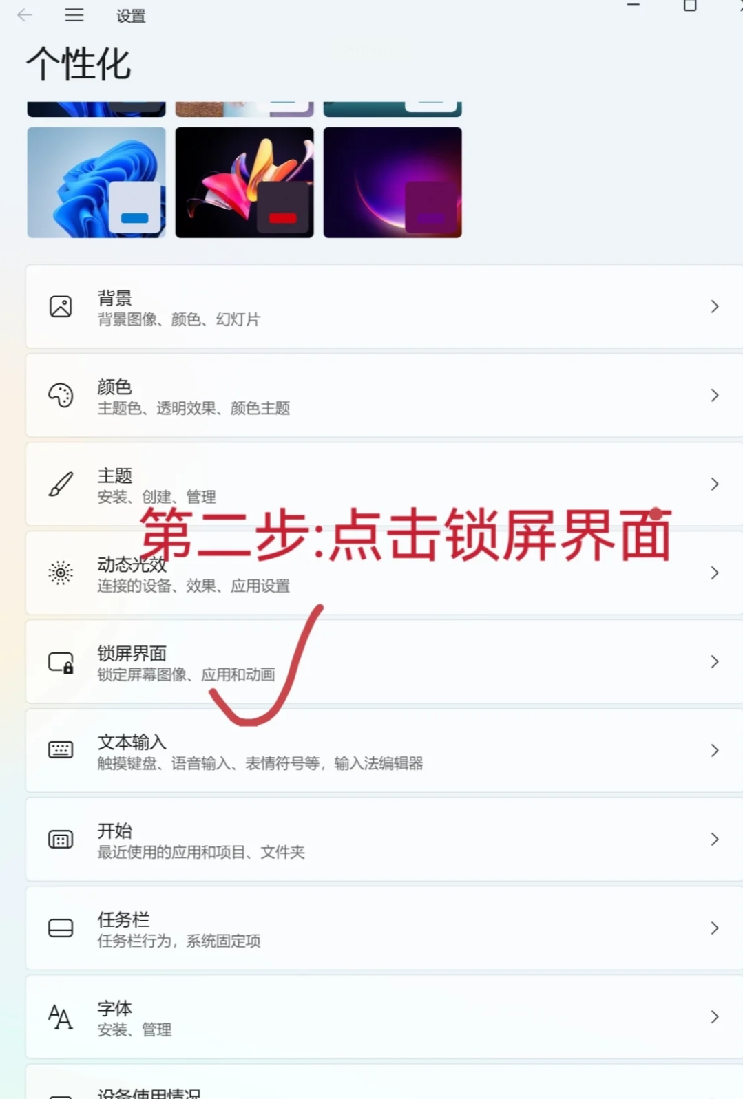 2. 在设置窗口中,找到并点击“个性化”选项,然后在左侧菜单中选择“锁屏”标签页。