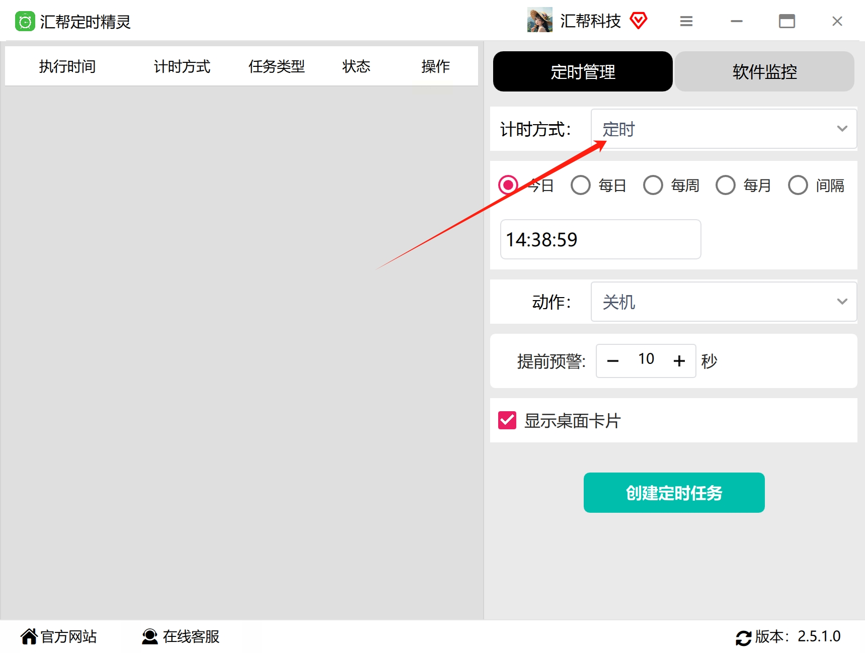2. 在定时任务创建页面中,将计时方式选择为“定时”模式,以便在特定时间点执行锁屏操作。