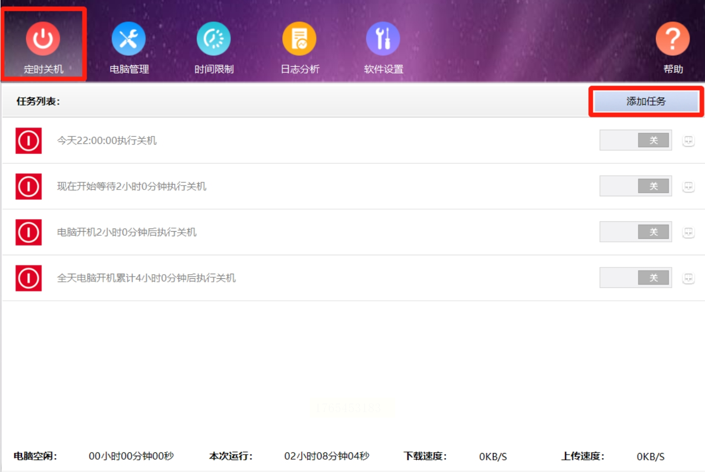 步骤1:下载安装“定时关机200”软件(注意从官网下载避免捆绑软件)。打开后默认显示的是定时关机界面,直接点击“添加任务”按钮。