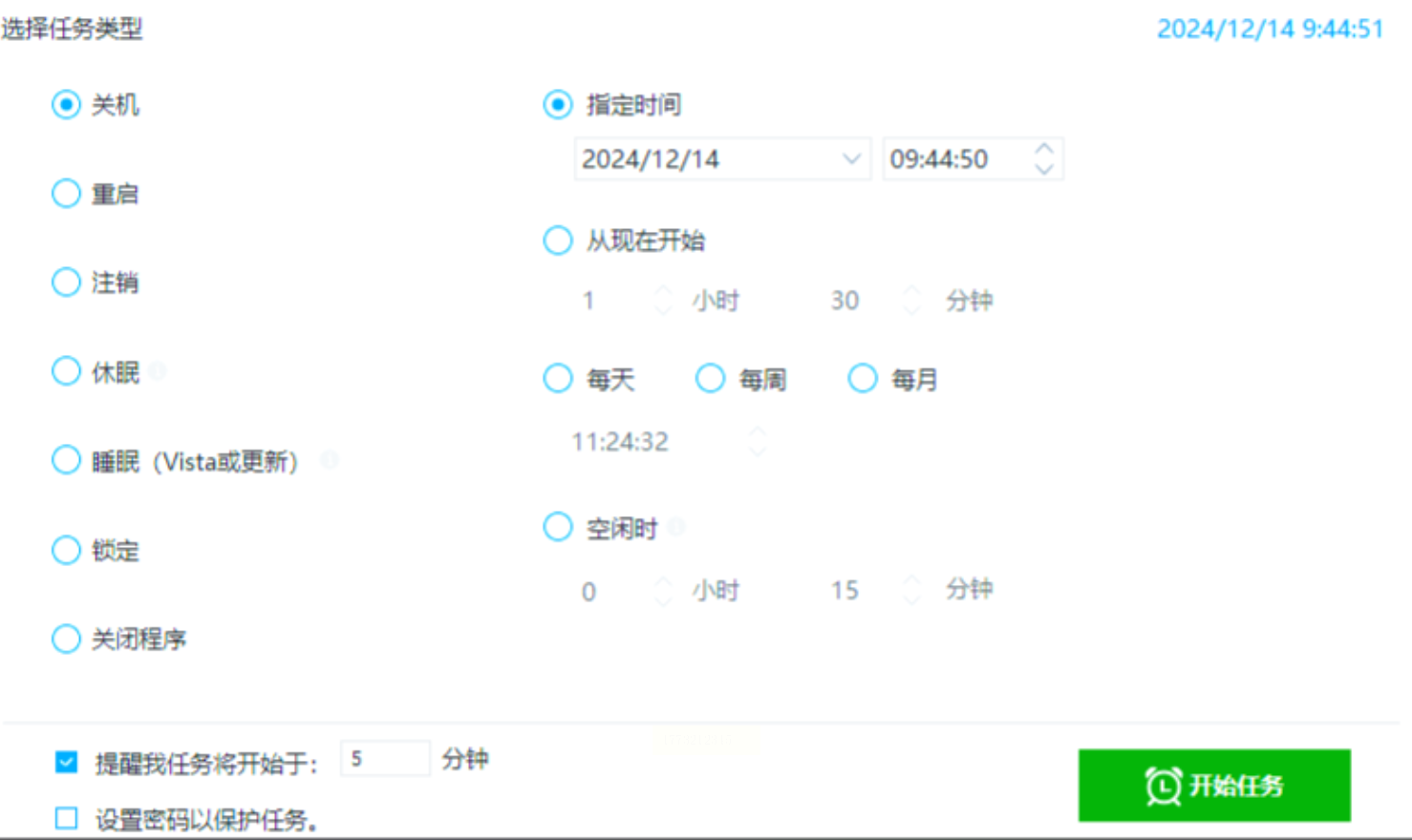 Step4:勾选“自动提醒”(可选),点击“开始任务”,任务最小化到托盘。