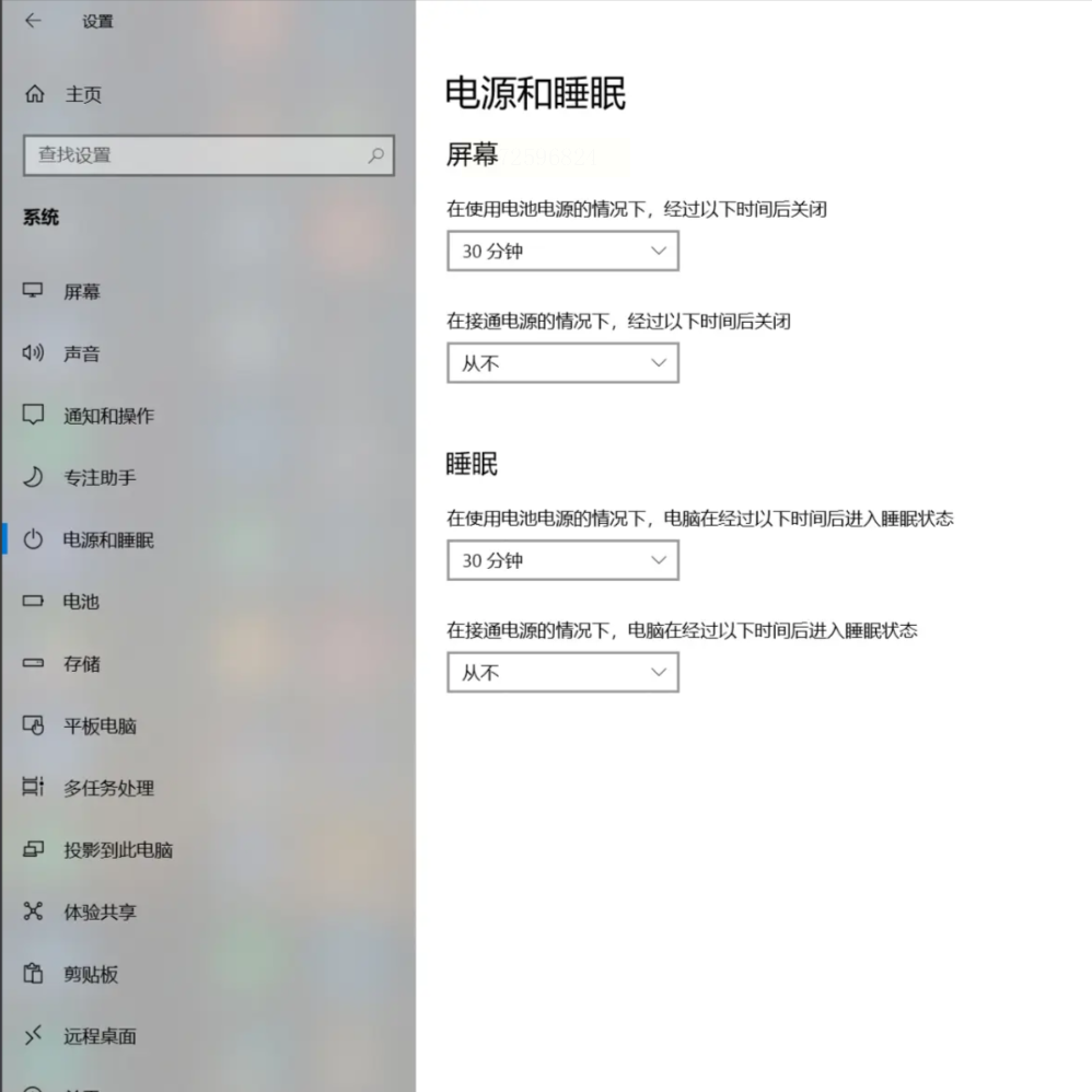 在「睡眠」选项中找到「在此时间后休眠」,设置为30分钟(或更长时间),点击确定即可。