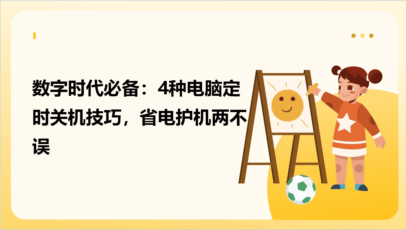 在数字时代,电脑已成为我们工作、娱乐的核心工具。但长时间运行不仅耗电,还可能因系统老化或意外断电导致数据丢失。掌握定时关机技巧,既能提升用电效率,也能保护设备安全。本文将详细介绍四种实用方法,从简单的图形化工具到专业命令行操作,助你轻松实现电脑定时管理。