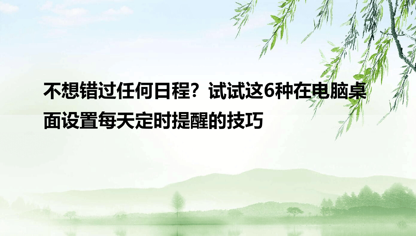 哎,你是不是也经常这样?忙起来连喝水都顾不上,结果一抬头发现错过了会议、忘了吃药,甚至差点耽误接孩子?别问我怎么知道的,说多了都是泪啊!更扎心的是,明明设了手机闹钟,可手机一静音就跟砖头没两样。这时候你就需要一套靠谱的电脑定时提醒方案了。