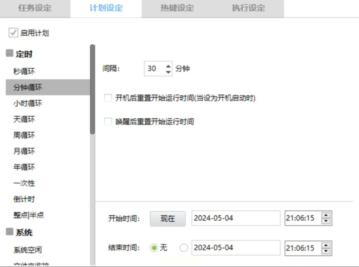 3. 设置循环方式,支持按秒、分钟、天甚至月循环
