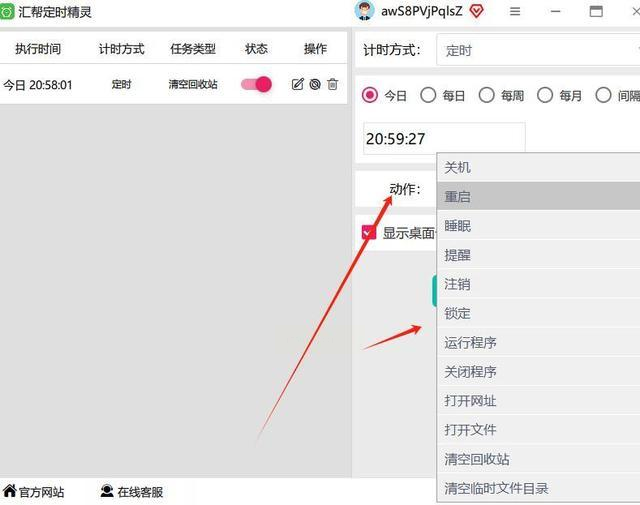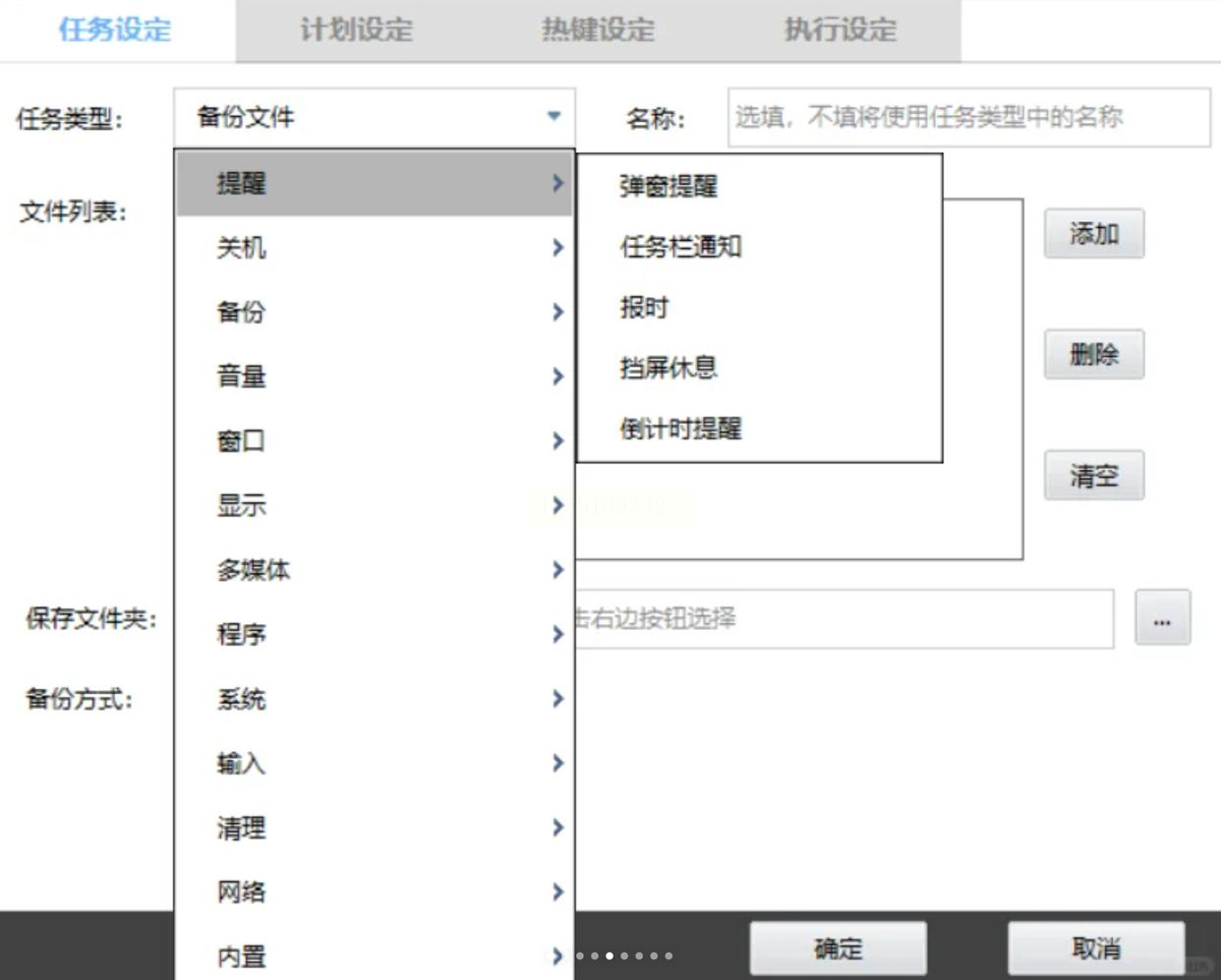 4. 点击创建任务按钮,在动作列表中选择提醒类型