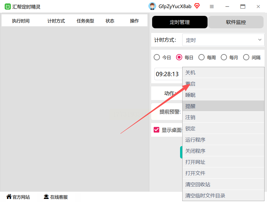 点击「保存任务」,软件在后台运行,到点自动执行重启。