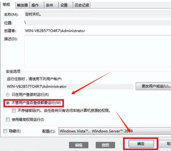 5. 最后,勾选“不管是否登录都要运行”选项,确保任务在后台执行。