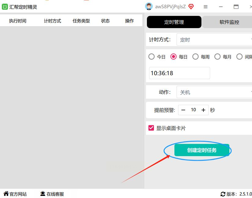 4. 确认所有信息无误后,点击“创建定时任务”保存设置。这样,一个自动关机任务就设置好了。软件会在后台运行,确保任务按时执行。
