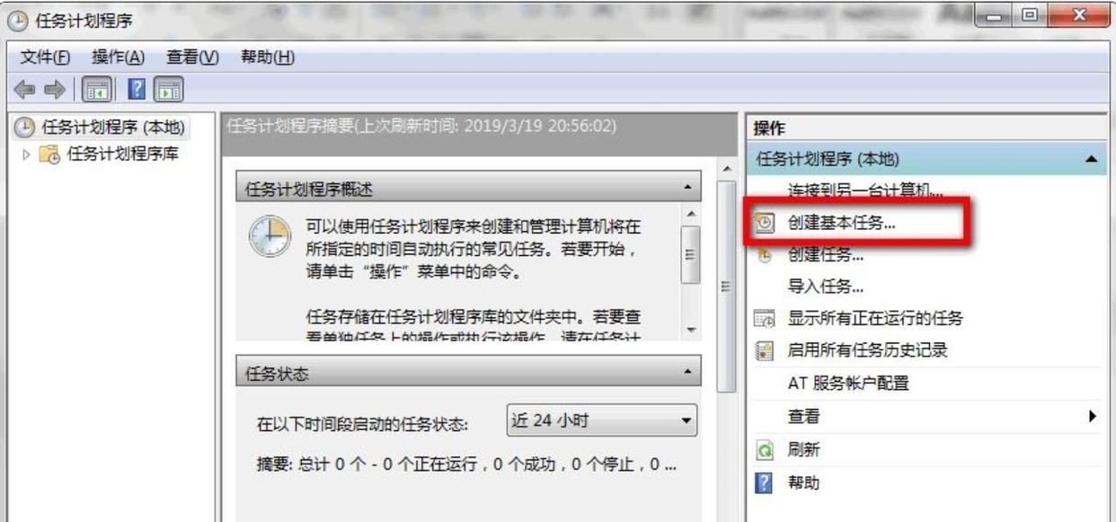 步骤4:进入主界面后,点击菜单栏的“操作”,选“创建基本任务”。右边操作栏也有这个按钮。