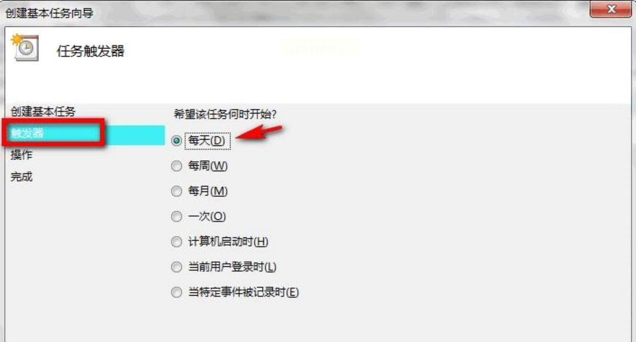 步骤6:触发条件选“每天”,继续“下一步”。