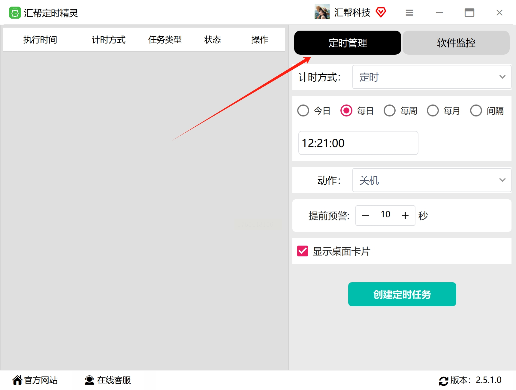 软件名称:汇帮定时精灵