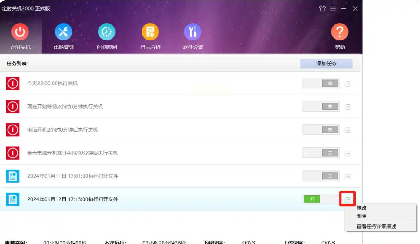 第六步:条件满足时,文件就会自动打开。不需要时,可以删除任务或直接关闭开关。
