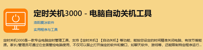 这个软件名字里带“3000”,一看就主打定时关机,功能挺直接的。要是你想严格控制自己或者孩子的上网时间,比如家长想让孩子每天只能玩1小时电脑,这个就很合适。
