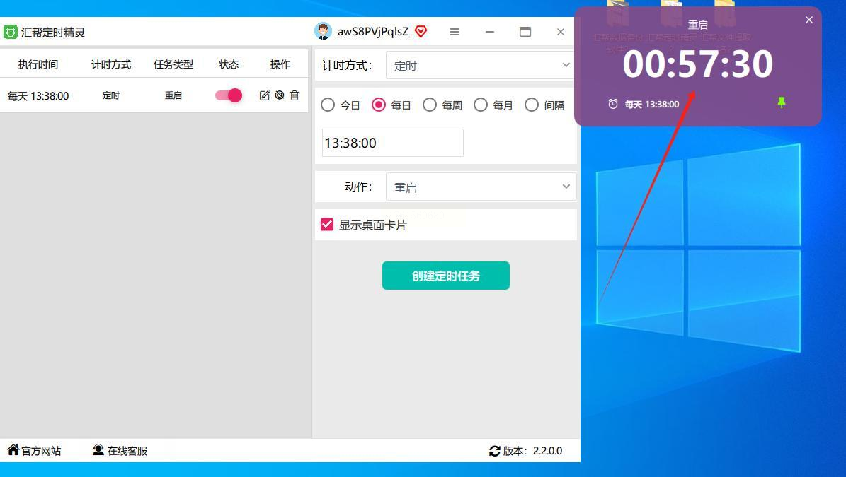点击之后,神奇的事情发生了——你的电脑桌面上会立刻出现一个半透明的小窗口,这就是“任务倒计时悬浮窗”。它会清晰地显示距离下一次自动重启还有多少时间,让你心里有数。