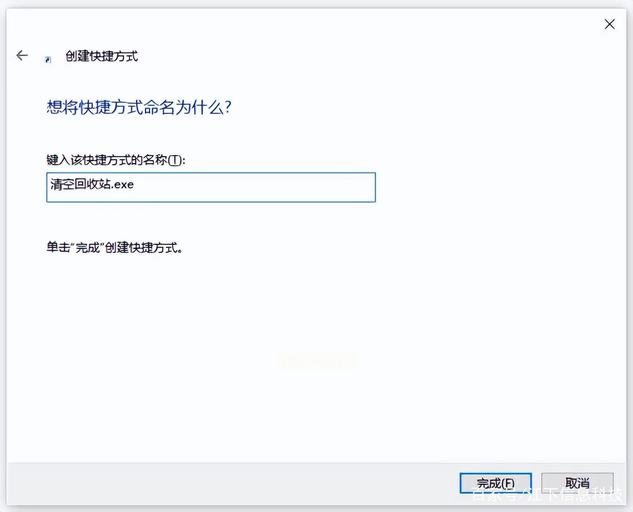 3. 点击“下一步”,给这个快捷方式命名,比如“自动清理回收站”。