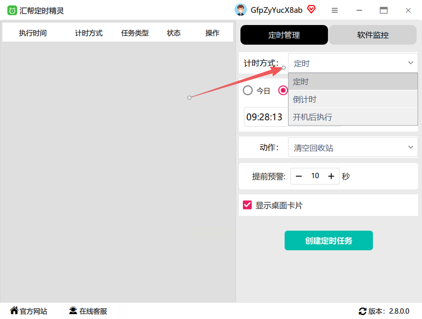 1. 打开软件后点右侧「定时管理」,选择「新建任务」