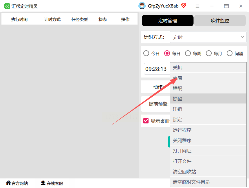 1. 打开软件后,「任务类型」选「系统重启」