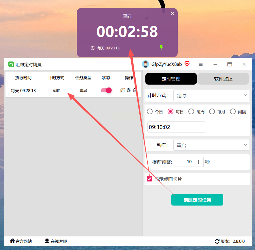 二、桌面小工具:汇帮定时精灵(最直观)